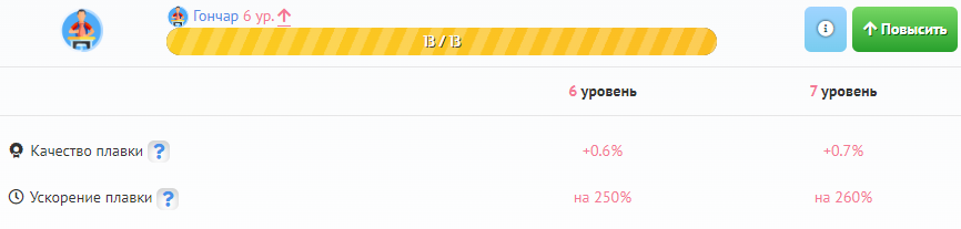 По мере накопления опыта по данному навыку Вы сможете улучшать на этой странице Ваш навык гончара, и оказывать большее влияние на процесс производства бонусов. А значит — станете более интересным и высокооплачиваемым сотрудником с точки зрения владельцев Фабрик бонусов.