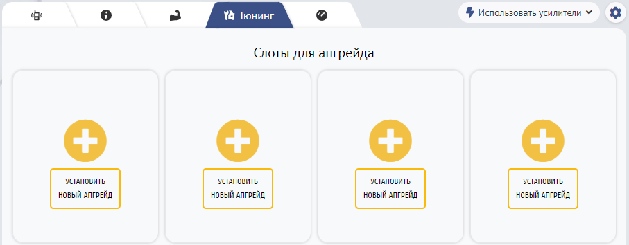 Чтобы установить апгрейд, выберите свободный слот и нажмите на кнопку «Установить новый апгрейд». Далее нажмите на кнопку «Купить» напротив интересующего Вас апгрейда.