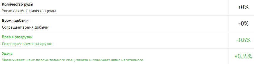 Быстрая добыча — ускоряет добычу руды на величину от 30% до 75% исходного времени выполнения заказа.