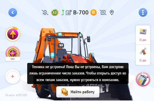Устроиться на работу в горную компанию можно несколькими способами. Откройте страницу Вашего бульдозера, и на вкладке «Инфо» нажмите на кнопку «Найти работу» внизу страницы.