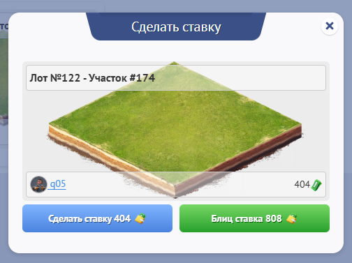 После того, как таймер закончится участок перейдет под владение пользователя, который сделал последнюю ставку, если до этого, кто - то не купит данный лот блиц ставкой.