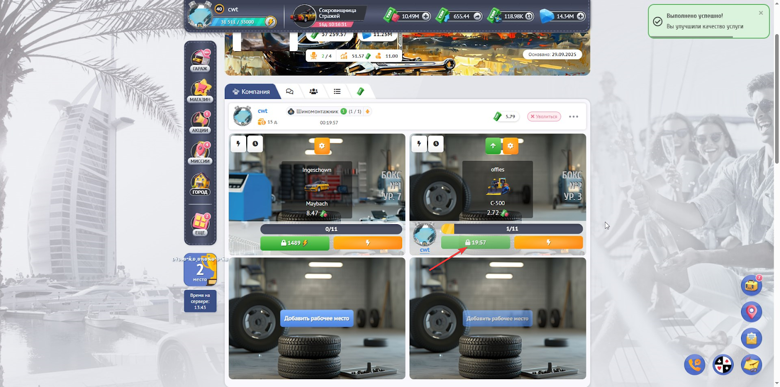 Развивайте свой Шиномонтаж, нанимайте лучших мастеров и станьте главным автомагнатом Полиса!