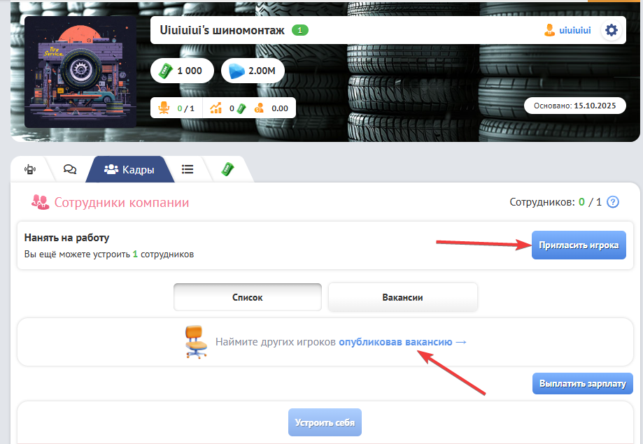 1. Нанимайте сотрудников в разделе “Кадры” с помощью вакансий или прямых приглашений, чтобы ускорить обслуживание клиентов и увеличить количество предсказаний