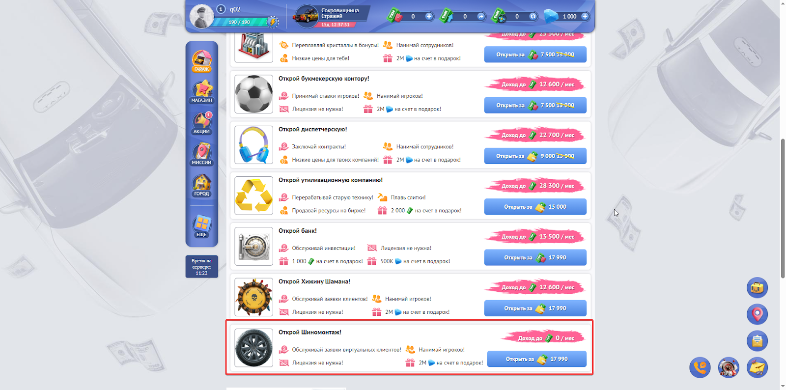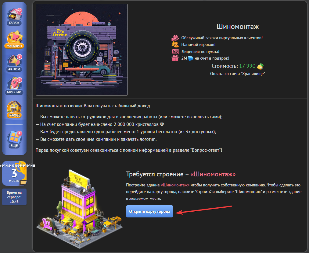 Постройте здание: Построить “шиномонтаж” достаточно легко. Нужно зайти на страницу Бизнесы