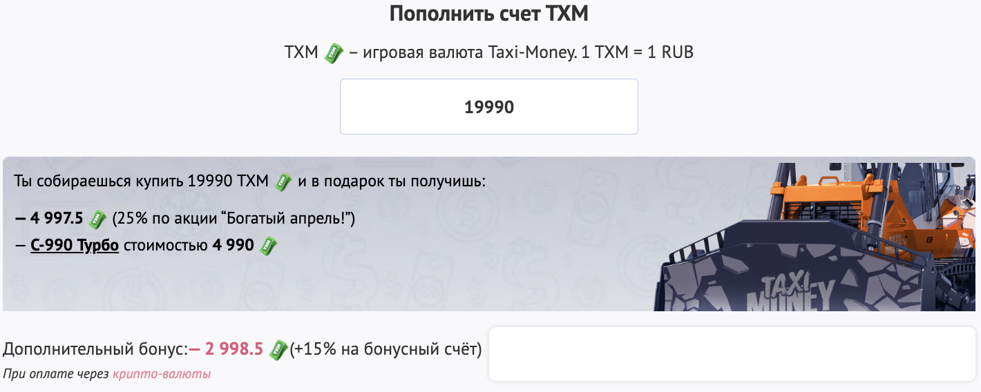 Пополнения игровых счетов в Taxi-Money с холодного / программного криптокошелька проходят аналогично описанному выше сценарию.