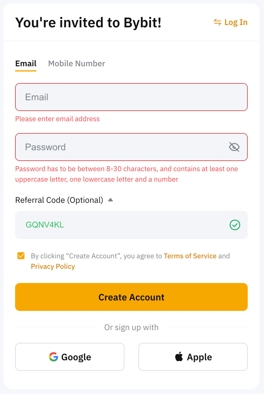 1. Перейдите на страницу регистрации на бирже Bybit.