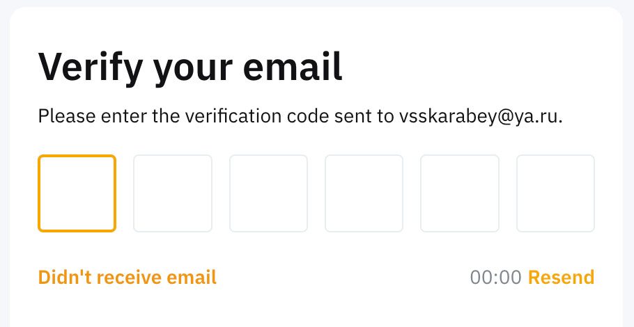 3. Далее для продолжения работы на бирже Вам необходимо подтвердить Вашу электронную почту. Для этого введите цифровой код, который придёт к Вам в почтовый ящик от Bybit.