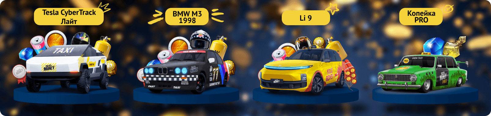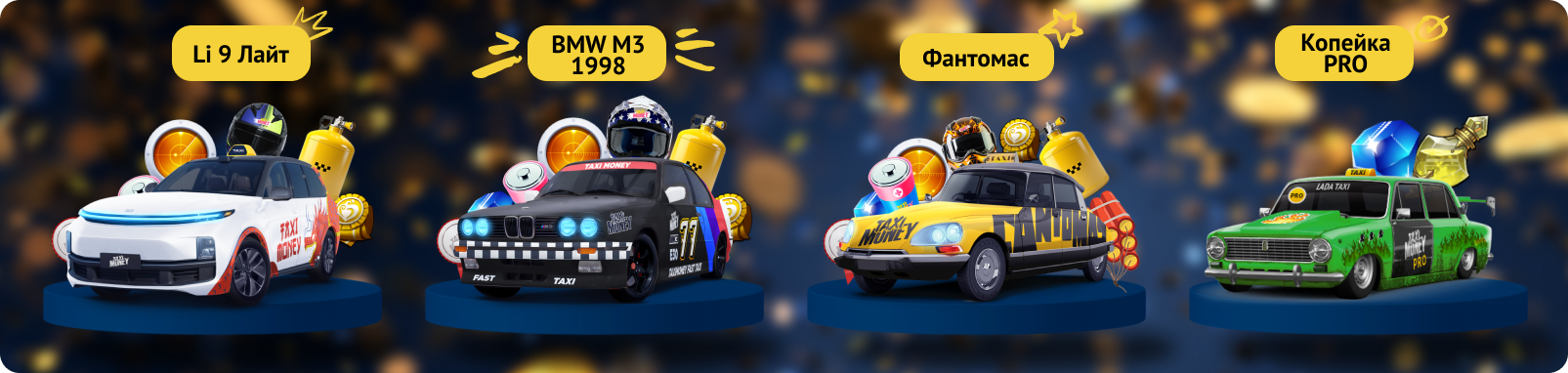 Новые беспроигрышные лотереи уже ждут тебя! В декабре и январе выигрывай за лотерейные монетки такси Машина Деда Мороза Лайт 4-го ранга, уникальное такси 3-го ранга Фантомас для потрясающих побед в Турнирах, лучшее такси для старта в игре Копейка PRO, а также флагманский бульдозер B-999 для заработка на 2-м ранге Горной добычи!